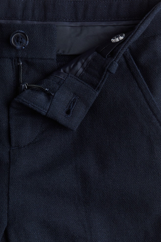 Узкие брюки из хлопкового костюма со стрелками, боковыми карманами и декоративными карманами на пуговицах сзади. Пояс с регулируемой резинкой, застежкой на молнию и пуговицу.