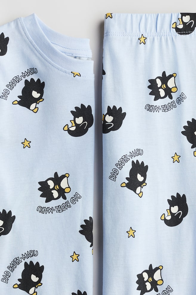 H&M x Hello Kitty и друзья. Веселая и красочная коллекция с уютными стилями, милыми принтами и игривыми аксессуарами. Откройте для себя мир Hello Kitty и всех наших пушистых любимцев! Пижама из мягкого хлопкового трикотажа с принтом по всей поверхности. Рубашка с длинными рукавами, круглым вырезом и манжетами. Брюки имеют эластичный пояс и манжеты на штанинах.
