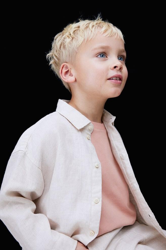 H&M Adorables. Рубашка из мягкого, воздушного льна, идеально подходит для теплых летних дней. С отложным воротником, планкой на пуговицах и кокеткой сзади. Заниженная линия плеча и длинные рукава с манжетами на пуговицах. Лен — это очень практичная ткань с легкой текстурой, которая быстро сохнет и со временем становится мягче. H&M Adorables — это тщательно отобранная коллекция классических и удобных вещей высокого качества.