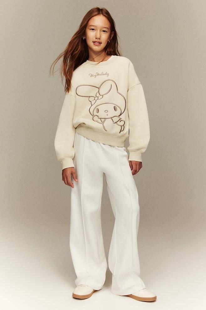 H&M x Hello Kitty и друзья. Веселая и красочная коллекция с уютными стилями, милыми принтами и игривыми аксессуарами. Откройте для себя мир Hello Kitty и всех наших пушистых любимцев! Свитшот с мягкой начесом на изнанке и вышитым узором спереди. Ребристая круглая горловина, сильно спущенные плечи и ребристые манжеты на рукавах и подоле.