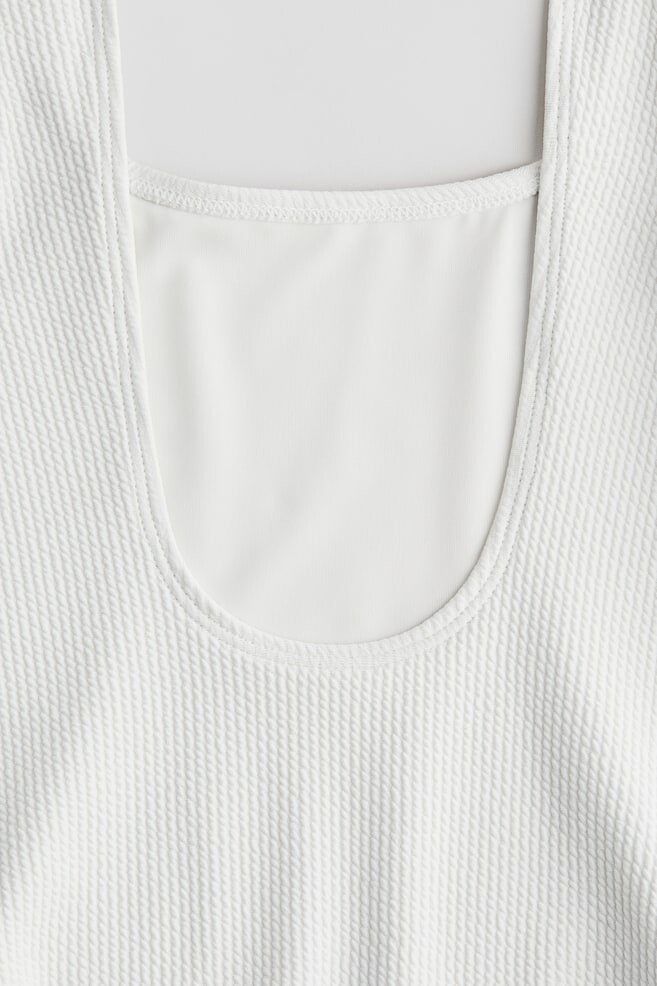 Полностью подшитый ребристый купальник с круглым вырезом и низкой спиной.