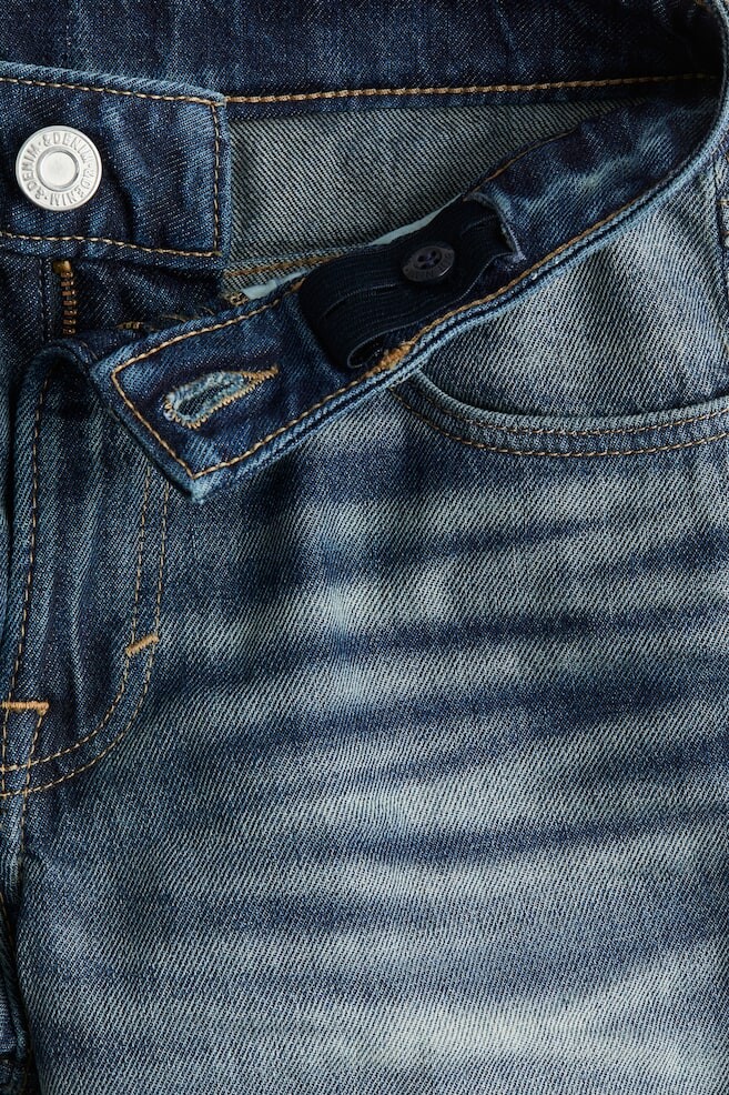 Джинсы с пятью карманами из стираного, эластичного и гибкого денима для максимального комфорта. Пояс с регулируемой резинкой, застежкой на молнию и пуговицу. Повседневный крой с зауженными штанинами.