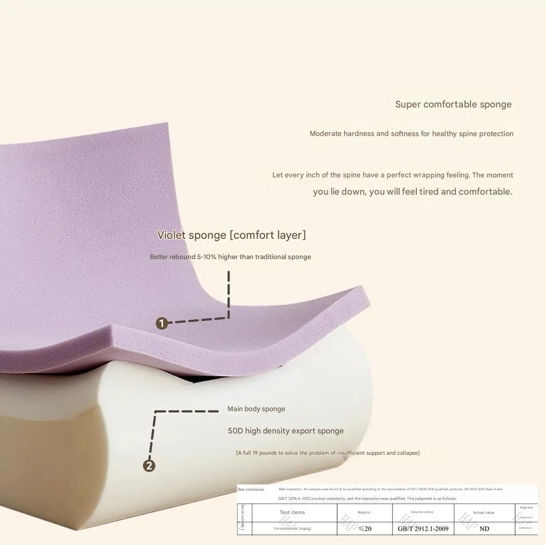 Подарите себе заботливый уход. Суперкомфортная губка, умеренная твердость и мягкость для здоровой защиты позвоночника Позволяет каждому сантиметру позвоночника иметь идеальное ощущение окутывания. Как только вы ляжете, вы почувствуете легкость и комфорт.