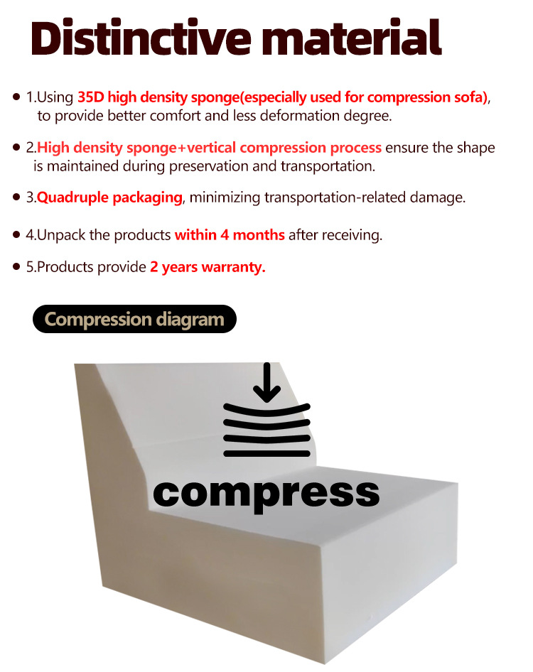- Использование губки высокой плотности 35D (специально используется для компрессионной мебели), чтобы обеспечить больший комфорт и меньшую степень деформации.