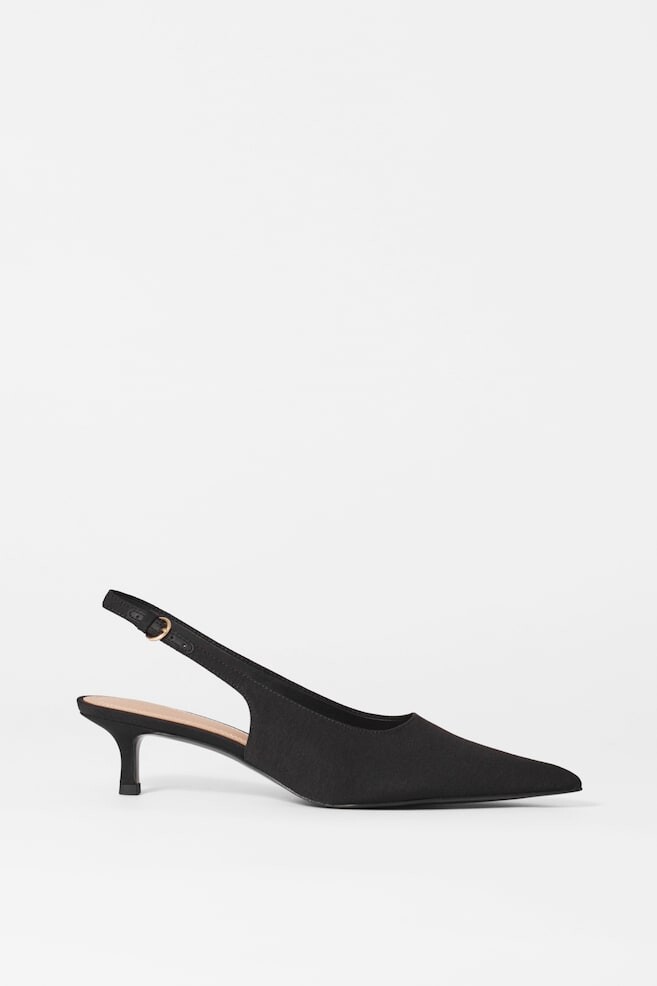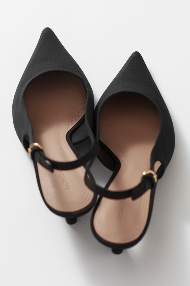 Эти классические туфли-лодочки с открытой пяткой из блестящего атласа имеют элегантный заостренный носок. Подкладка и подошва выполнены из мягкой кожи наппа, а регулируемые пряжки золотистого цвета. Высота каблука: 4,5 см