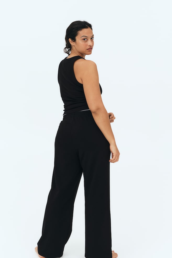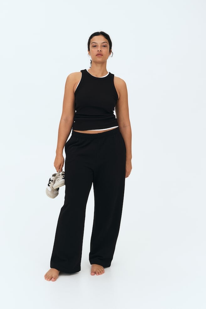 Легкие спортивные брюки из хлопковой смеси. Эластичный присборенный пояс, незаметные боковые карманы и прямые штанины. Свободный крой.