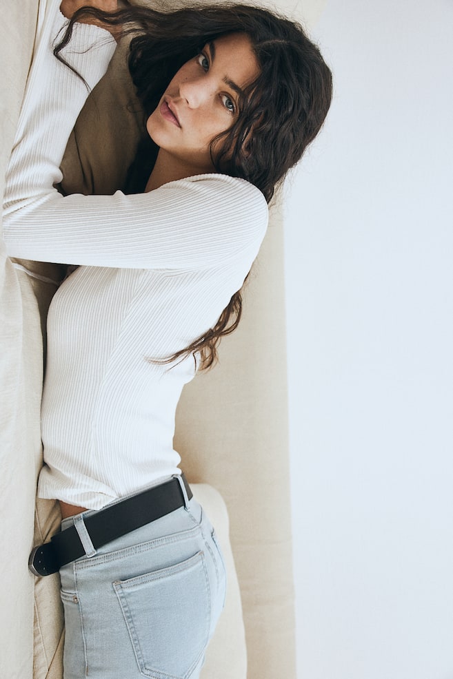 Джинсы из денима с небольшой добавкой эластичности для большего комфорта. Расклешенная модель с облегающим кроем в талии и бедрах, а также расклешенными штанинами от колена. Заниженная талия, застежка на молнию и пуговицу. Ложные передние карманы, карман для монет и открытые задние карманы. Нормальная длина. Эта модель разработана таким образом, чтобы создать небольшой или нулевой эффект нагромождения в передней части стопы. Икона моды с 70-х годов!