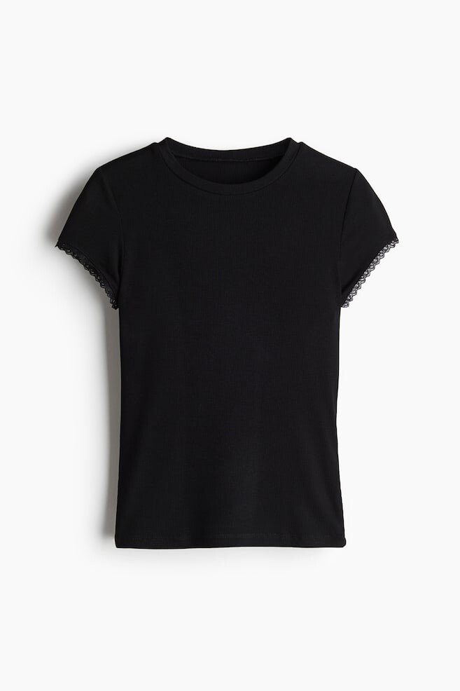 Футболка в рубчик с кружевной отделкой H&M, черный