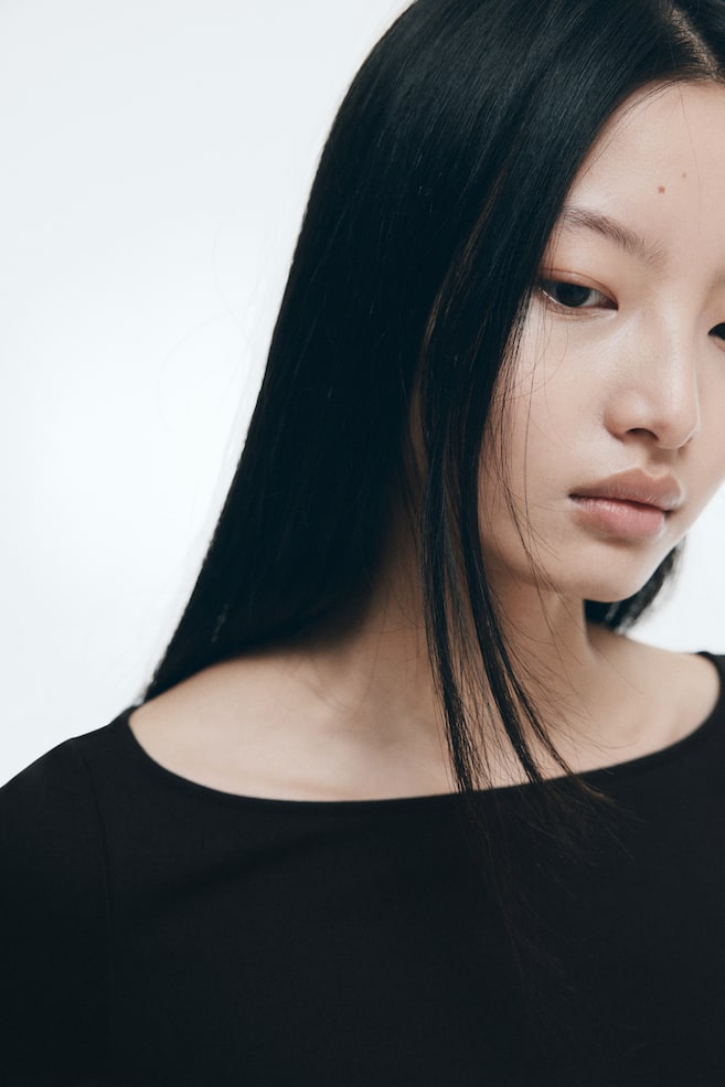Рубашка с вырезом-лодочкой H&M, черный 3 276₽