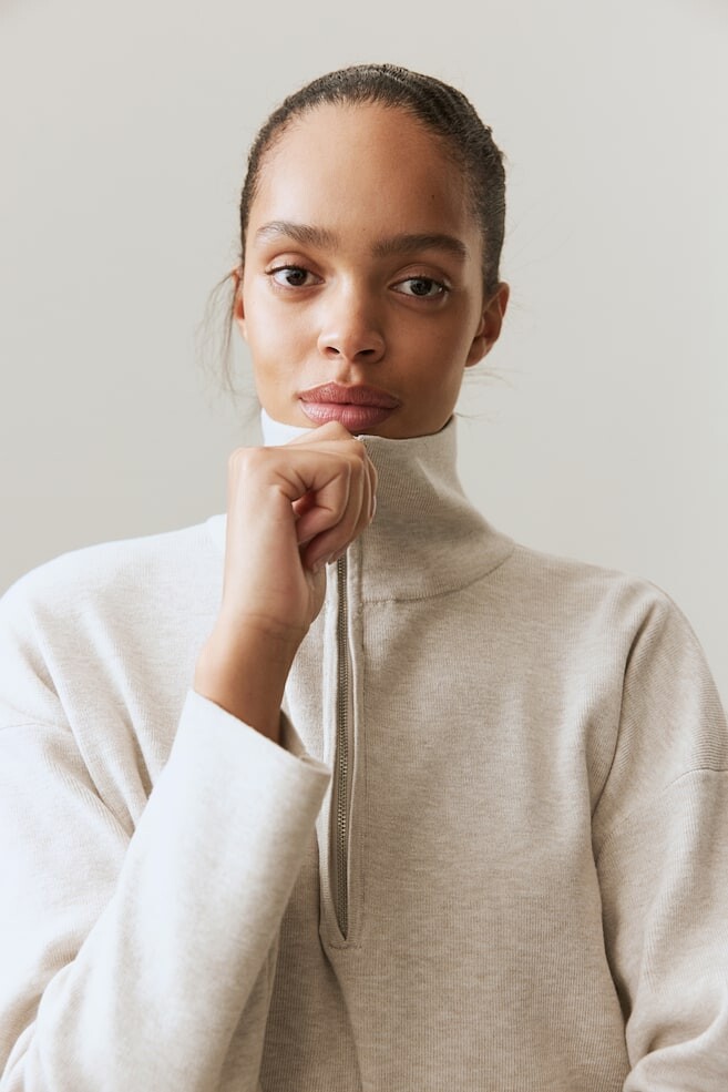 Свитер с застежкой-молнией H&M, бежевый