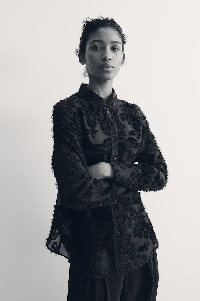 Блузка из структурированной ткани H&M, черный 3 411₽
