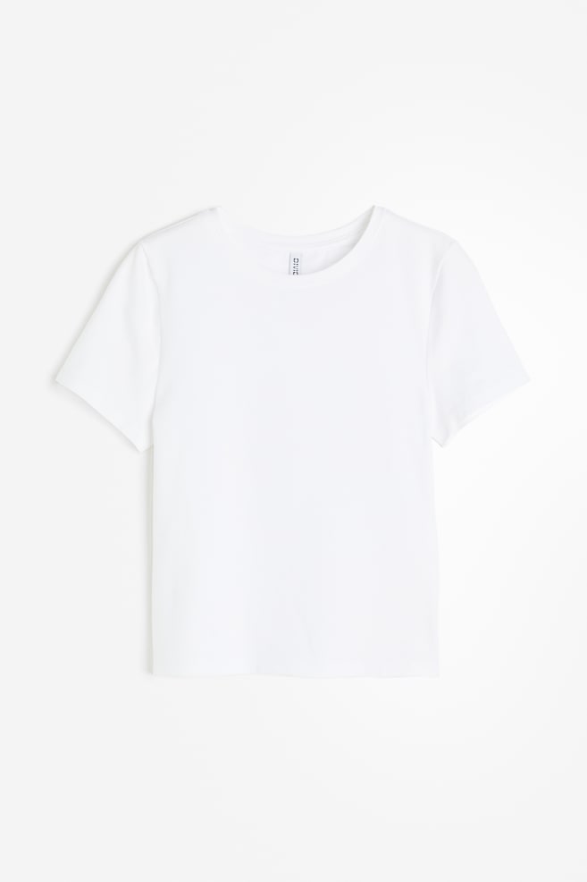 Короткая, облегающая футболка из мягкого трикотажа. Круглый вырез с узкой окантовкой и прямым подолом.
