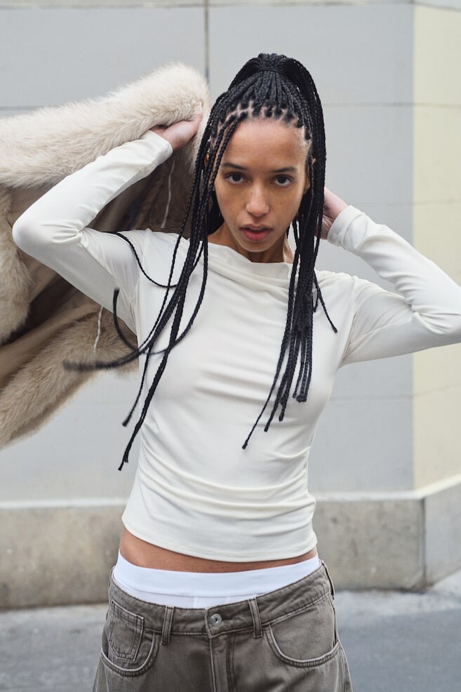 Драпированный трикотажный топ H&M, бежевый