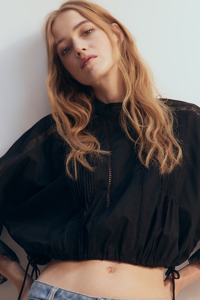 Хлопковая блузка с кружевными вставками H&M, черный