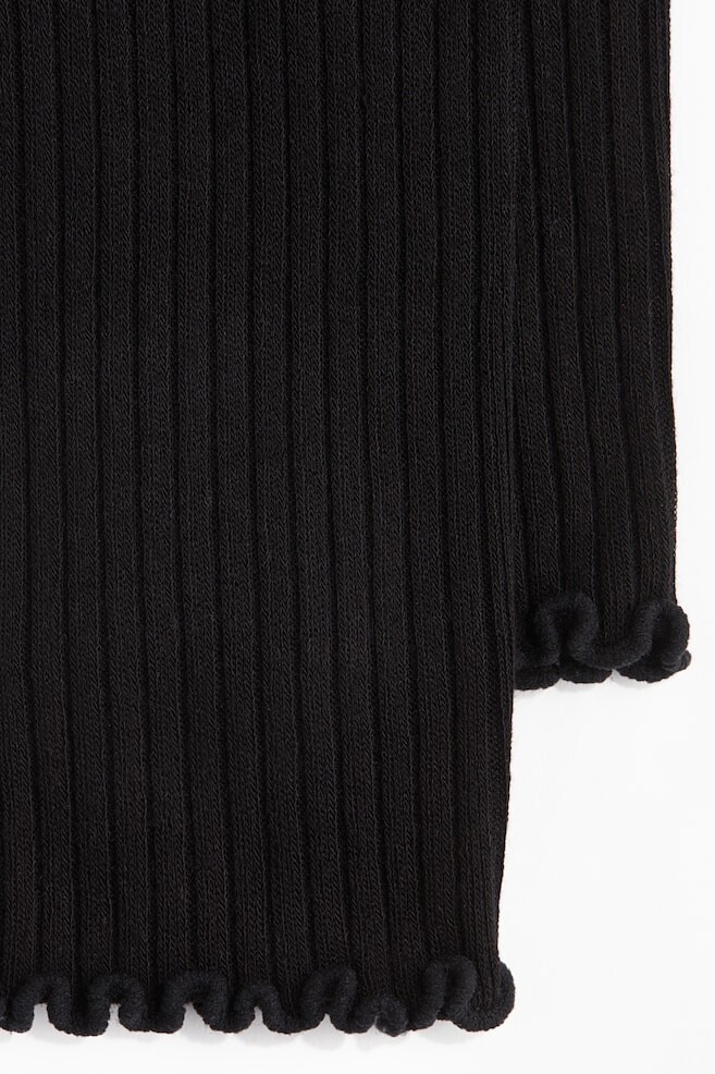 Колготки из мягкой рубчатой вязки из вискозной смеси с эластичным поясом нормальной высоты и оверлочной кромкой на концах штанин.