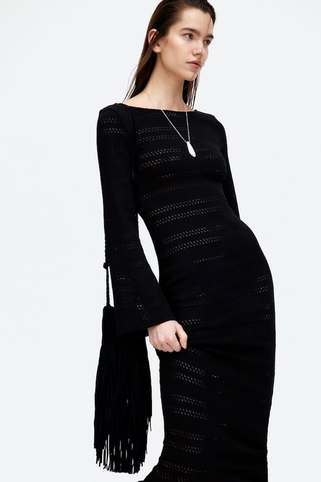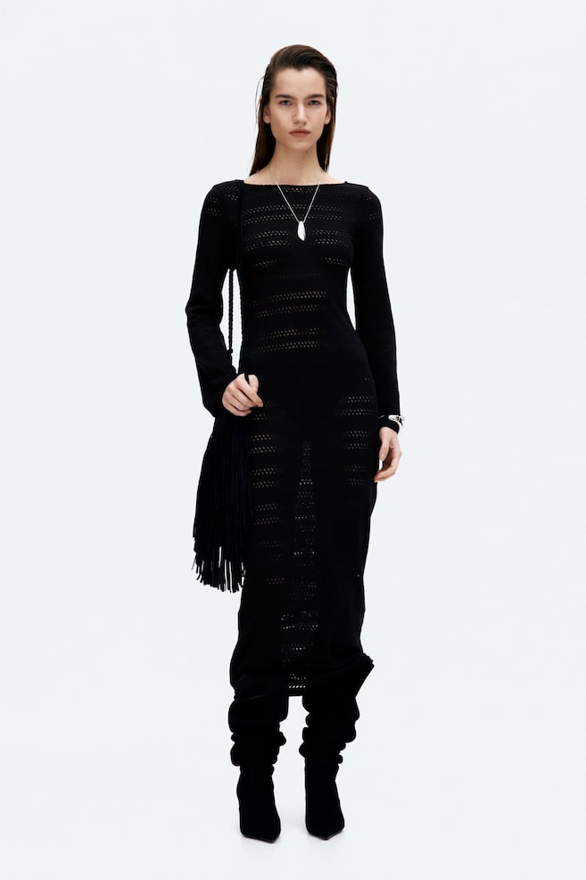 Платье ажурной вязки со шнуровкой H&M, черный