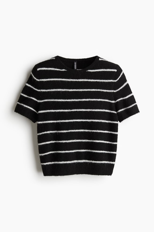 Облегающая футболка из мягкой тонкой вязки с ребристыми отделками по горловине, рукавам и подолу.