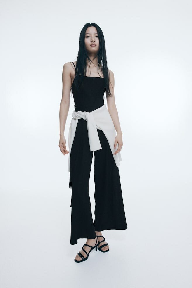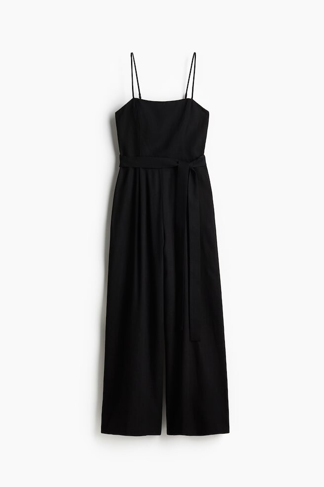 Комбинезон из смеси вискозы и льна. Регулируемые бретельки-спагетти и облегающий топ с прямым вырезом, потайной молнией с одной стороны и присборенной спинкой. Съемный пояс на талии и широкие штанины со складками спереди. Верх на подкладке.