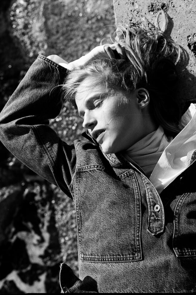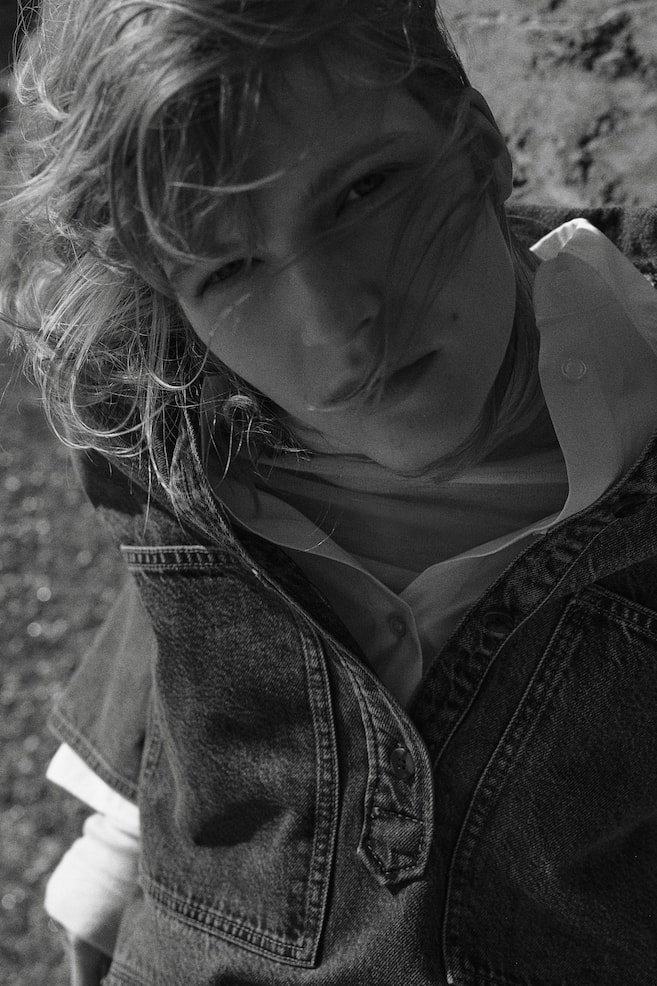 Длинная джинсовая блузка без застежек из хлопка/лиоцелла с воротником и планкой на пуговицах. Свободный крой. С большими нагрудными карманами, спущенной линией плеча и длинными рукавами. Разделительный шов на уровне бедер и прямой подол с высокими разрезами по бокам.