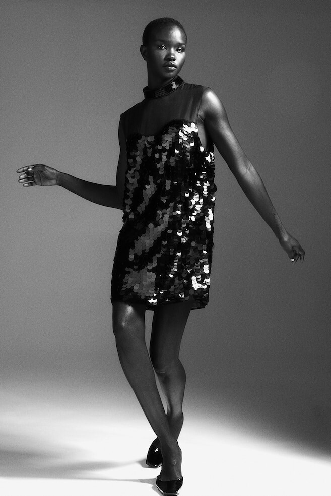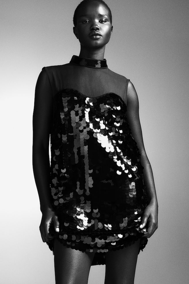 Мини-Платье с пайетками H&M, черный