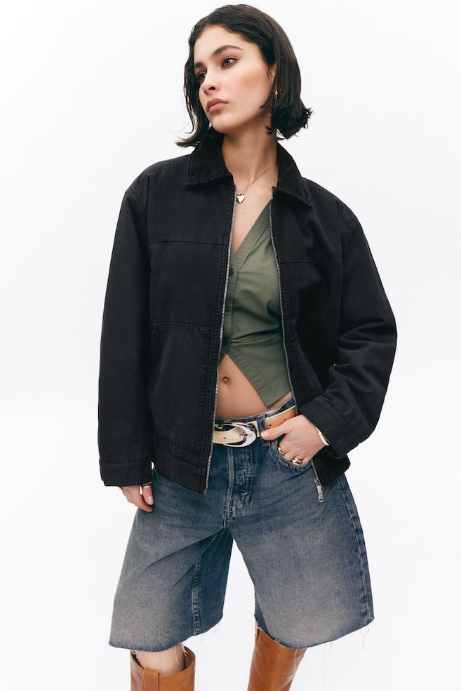 Слегка утепленная куртка из хлопчатобумажной парусины свободного кроя. Изделие имеет отложной вельветовый воротник, двухстороннюю молнию, большие накладные карманы и манжеты на пуговицах. Свободный крой. Нормальная длина. Вельветовый воротник. Двусторонняя молния. Накладные карманы. Манжеты застегиваются на пуговицы. Слегка набитый.
