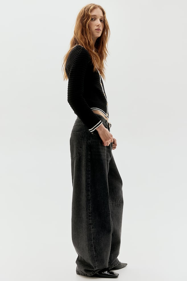 Кардиган структурной вязки с глубоким вырезом. H&M, черный 5 404₽