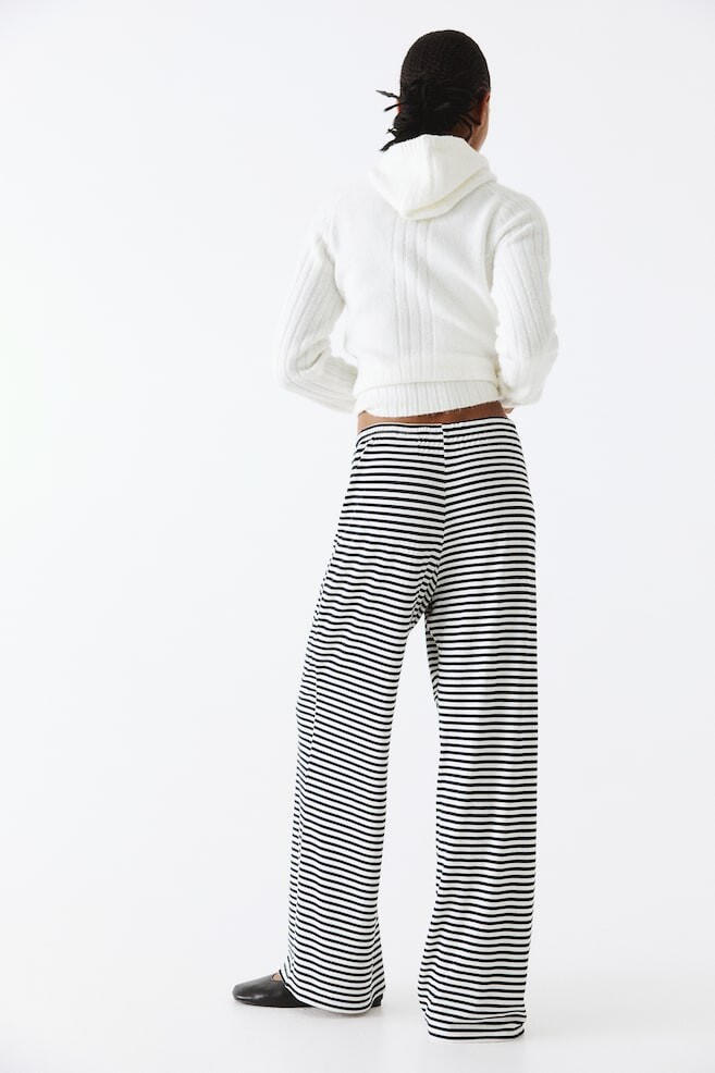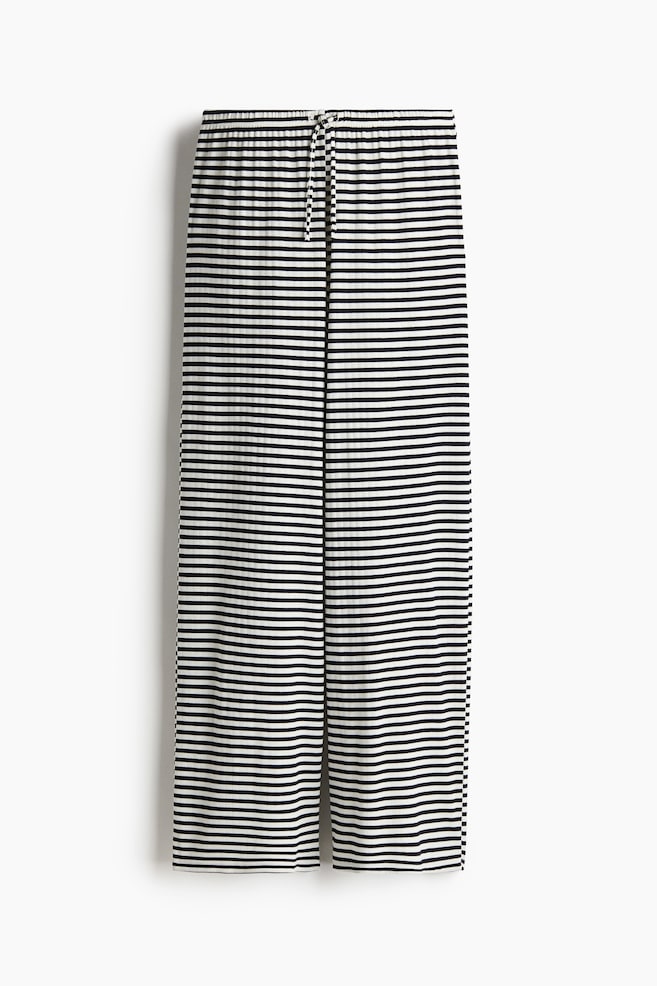 Мягкие трикотажные брюки с эластичной талией на шнурке и широкими штанинами.