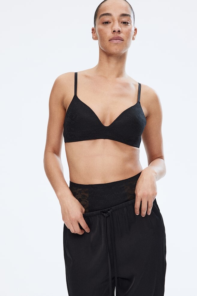 Бюстгальтер с подкладкой из кружева и косточками H&M, черный