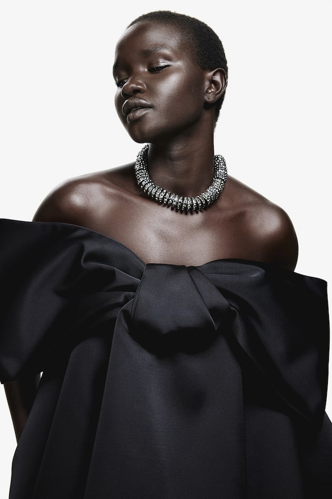 Атласное мини-платье с бантом H&M, черный