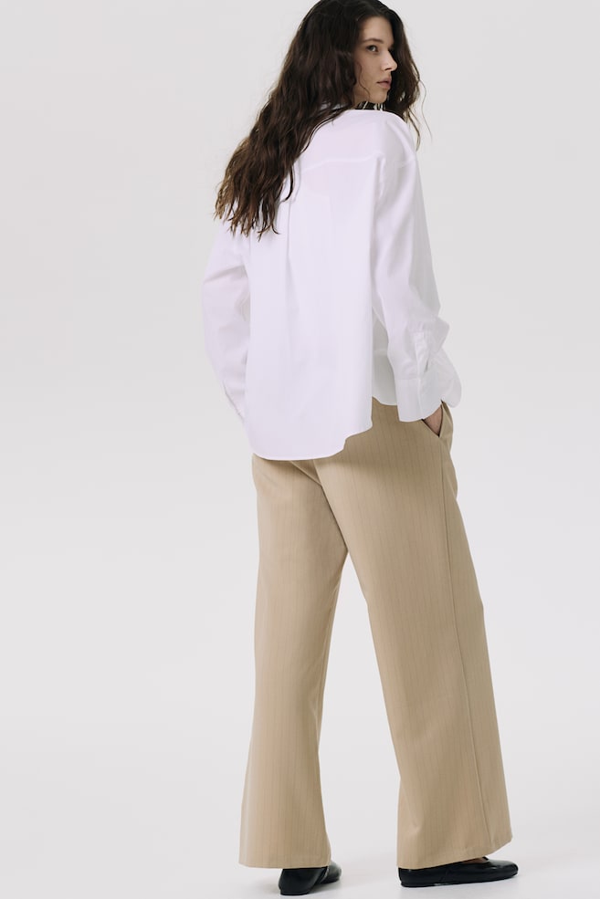 Брюки из твила с эластичным поясом на шнурке и свободным кроем. Незаметные боковые карманы, ложные прорезные карманы сзади и прямые штанины.