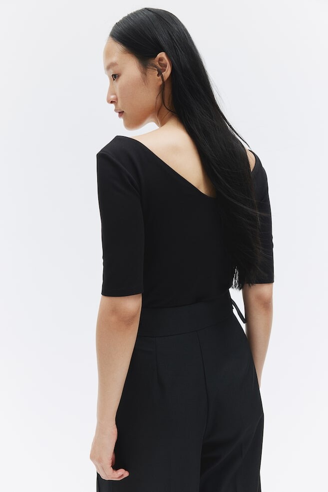 Рубашка из джерси с V-образным вырезом H&M, черный 2 234₽