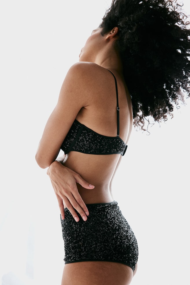 Бюстгальтер балконет с подкладкой и пайетками H&M, черный