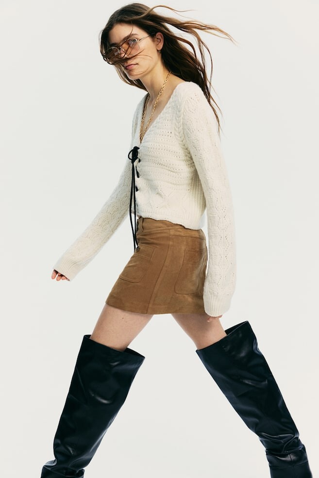 Кардиган ажурной вязки со шнуровкой H&M, бежевый 3 885₽
