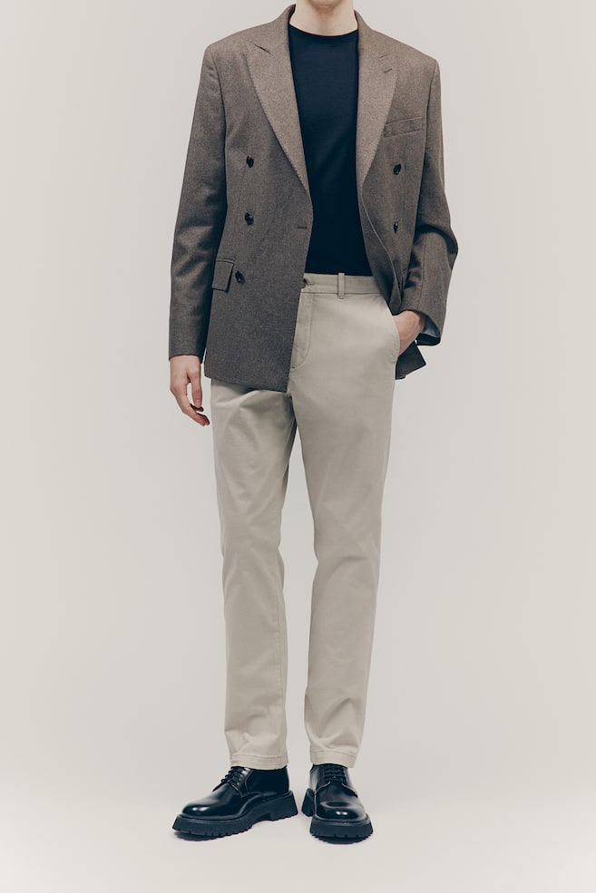 Хлопковые брюки-чинос облегающего кроя H&M, бежевый