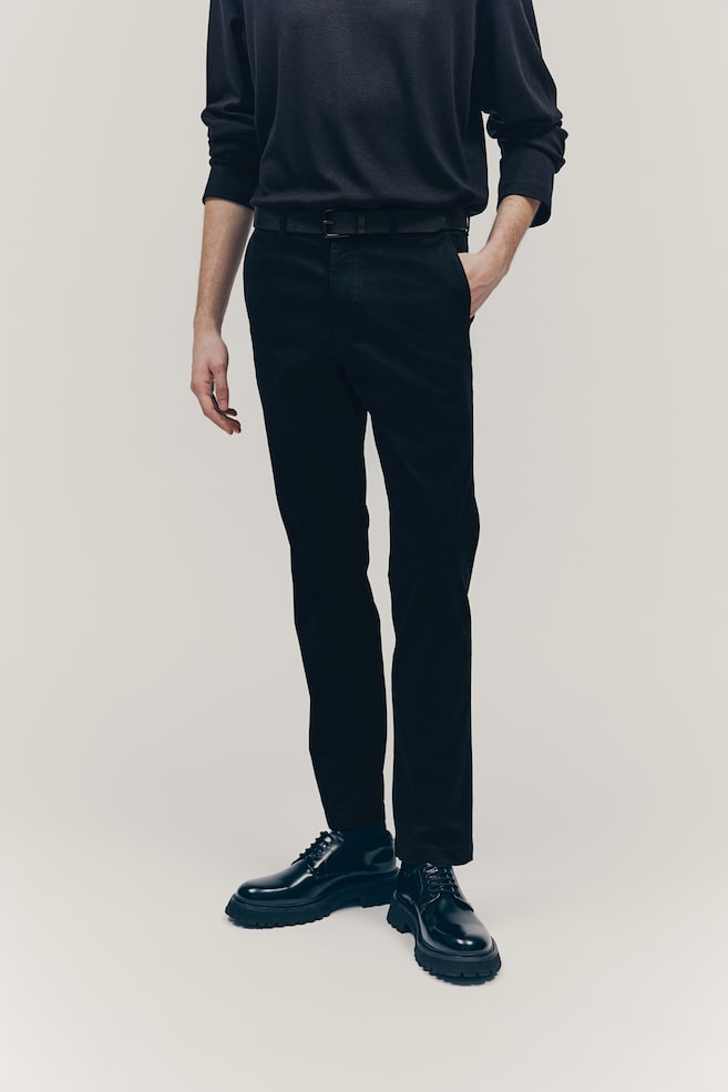 Хлопковые брюки-чинос облегающего кроя H&M, черный