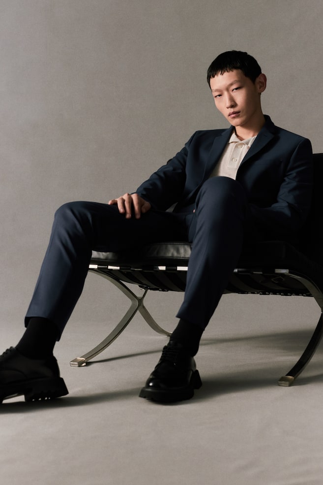 Костюмные брюки из тканого материала с застежкой на молнию и потайной крючок, боковыми карманами, задними прорезными карманами и стрелками. Slim Fit — это посадка, которая адаптируется к контурам тела и создает стройный силуэт.