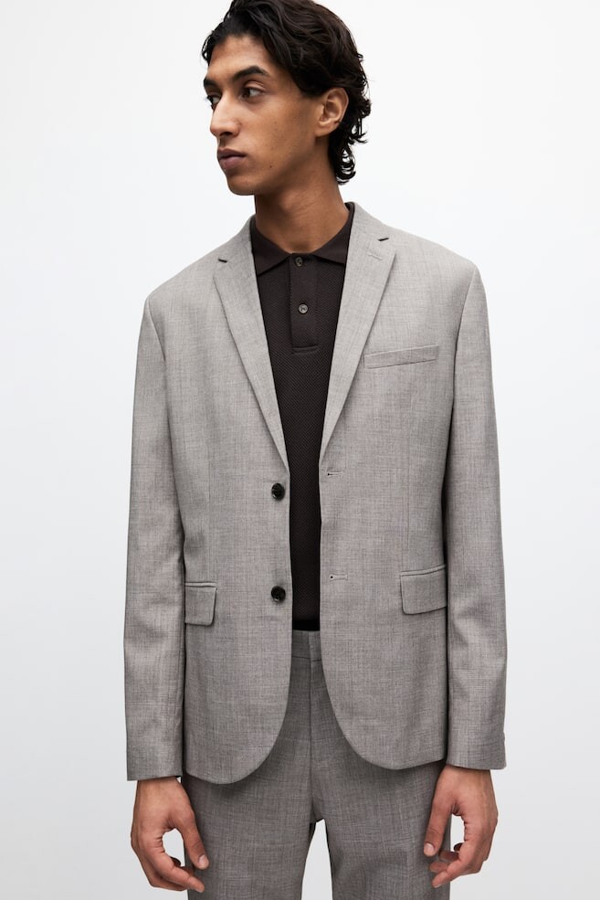 Однобортный пиджак из мягкой тканой ткани. С узким зубчатым лацканом, декоративной петлей и двумя пуговицами спереди. Прорезной карман на груди, два кармана с клапанами и два внутренних кармана. Декоративные пуговицы на рукавах и двойной разрез сзади. Slim Fit — это покрой, который адаптируется к контурам тела и создает стройный силуэт. На подкладке.