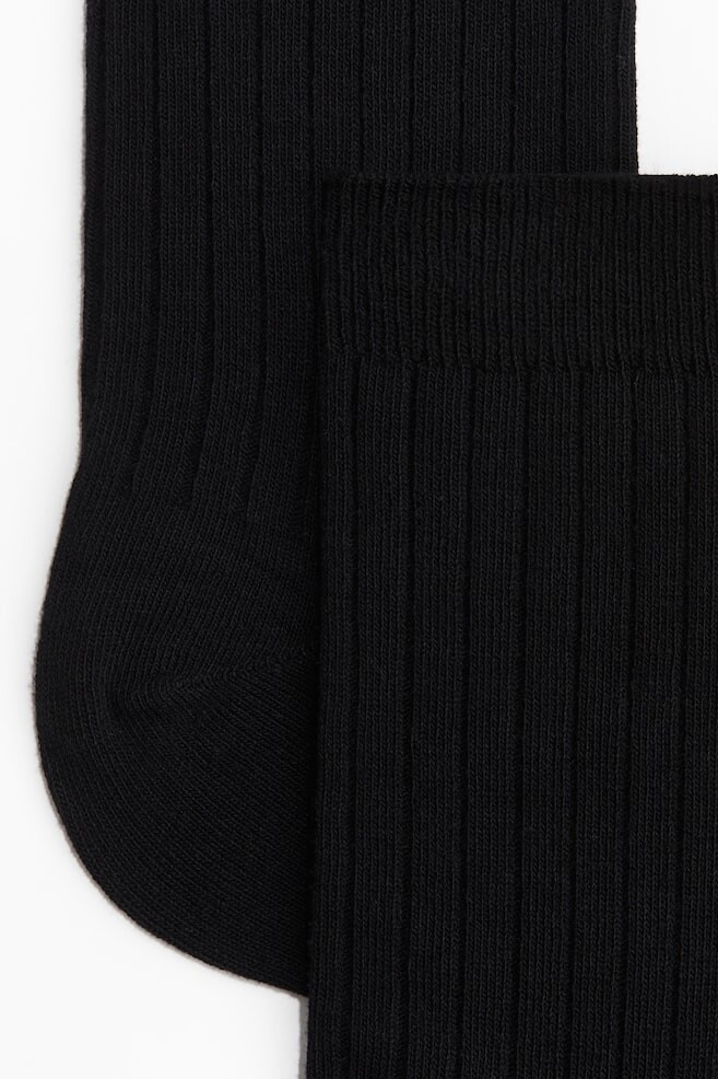 Тонкие трикотажные носки из хлопковой смеси. Модель с ребристым голенищем и эластичной манжетой.