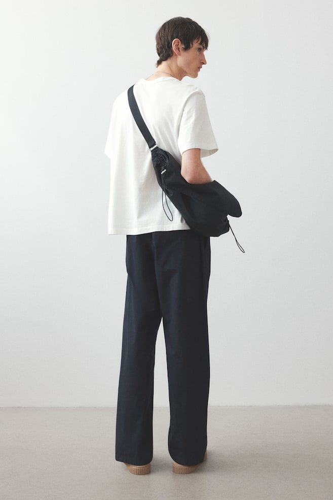 Футболка из хлопкового трикотажа средней плотности с ребристым круглым вырезом и прямым низом. Обычная посадка для удобной посадки и классического силуэта.