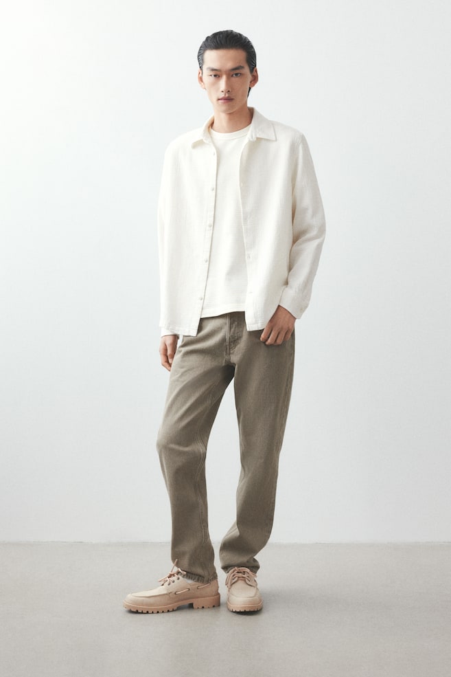Рубашка из воздушного хлопкового муслина с отложным воротником, французской застежкой на пуговицы, кокеткой сзади и открытым нагрудным карманом. Длинные рукава с манжетами на пуговицах и разрезом на рукаве. Прямой подол. Обычная посадка для удобной посадки и классического силуэта.