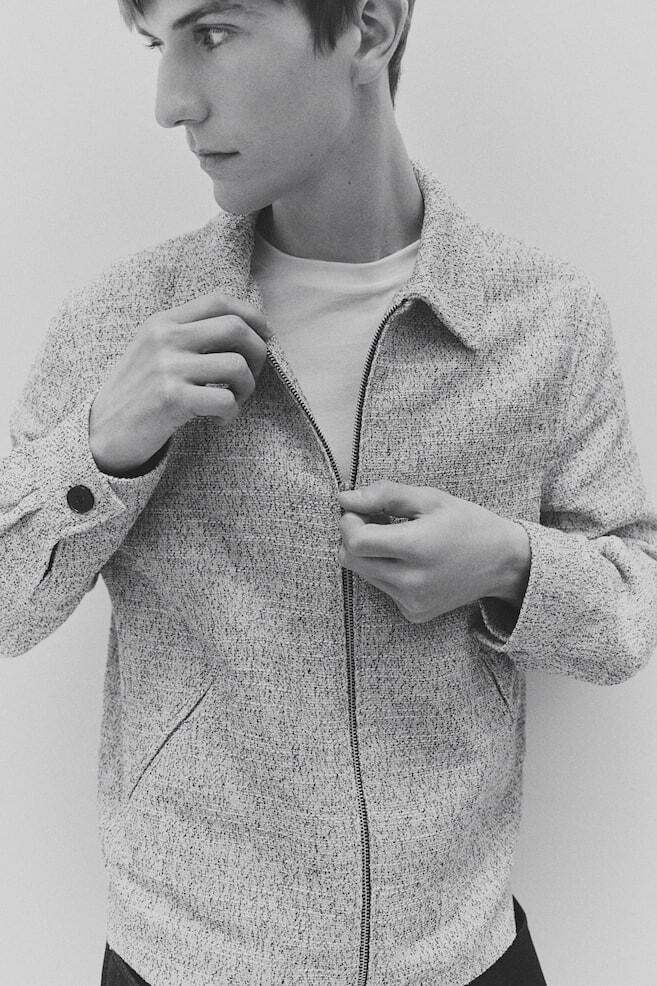 Кофта из мягкой ткани с воротником, молнией спереди, вертикальным швом сзади и манжетами на пуговицах. Диагональные прорезные карманы и внутренний карман на молнии. Классический крой для комфортной носки и классического силуэта. На подкладке.