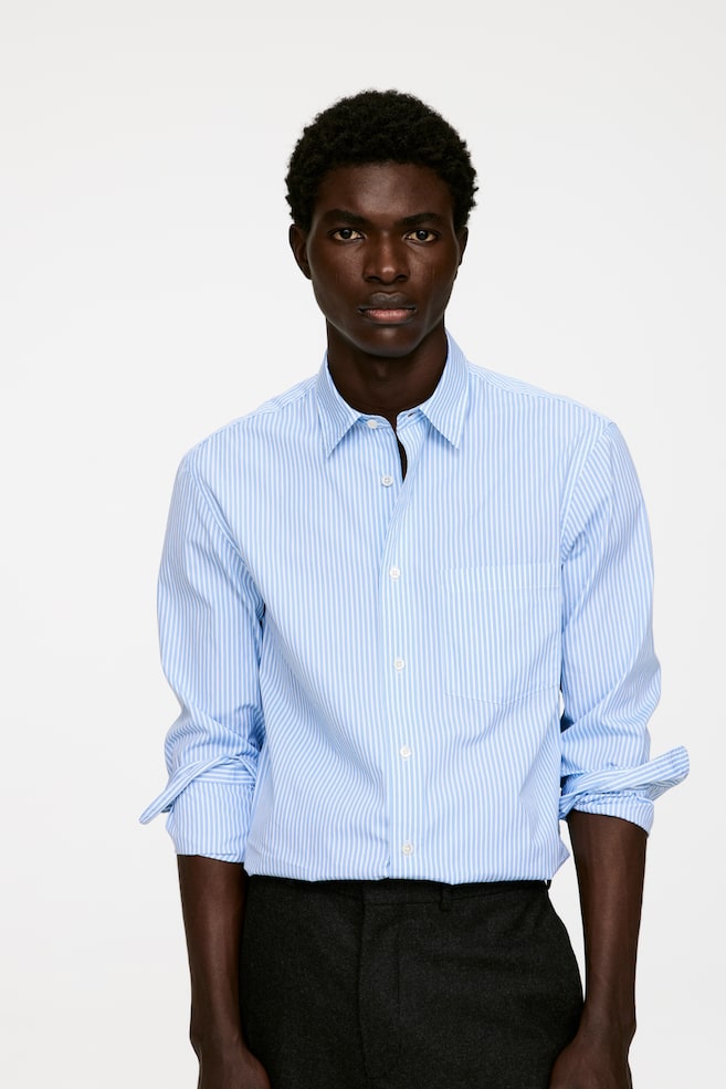 Рубашка из хлопкового поплина. С нагрудным карманом и манжетами на пуговицах. Свободный крой.