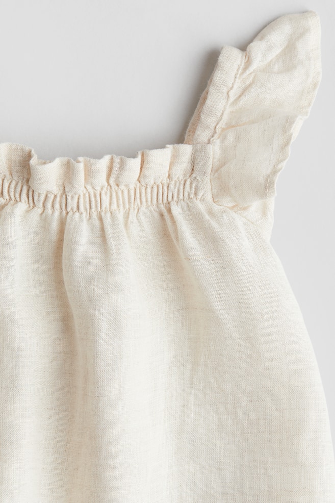 H&M Adorables. Комбинезон из мягкого, воздушного льна, идеально подходит для теплых летних дней. Прямой вырез горловины с узкой резинкой и оборкой спереди. Бретели с оборками и присборенная спинка. Потайные кнопки на штанинах для легкой смены подгузника и эластичные манжеты на штанинах. Лен — это очень практичная ткань с легкой текстурой, которая быстро сохнет и со временем становится мягче. H&M Adorables — это тщательно подобранная коллекция классических и удобных вещей высокого качества.