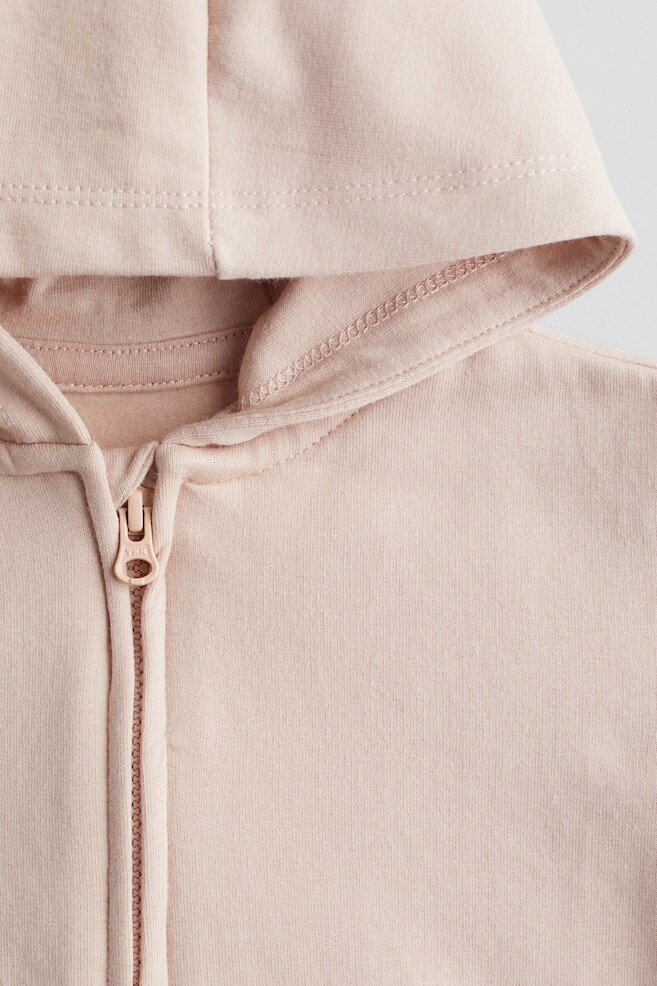 Куртка с капюшоном из хлопкового трикотажа с мягкой начесом внутри. Капюшон на подкладке, молния спереди с защитой подбородка, спущенные плечи и передние карманы. Манжеты и подол в рубчик.