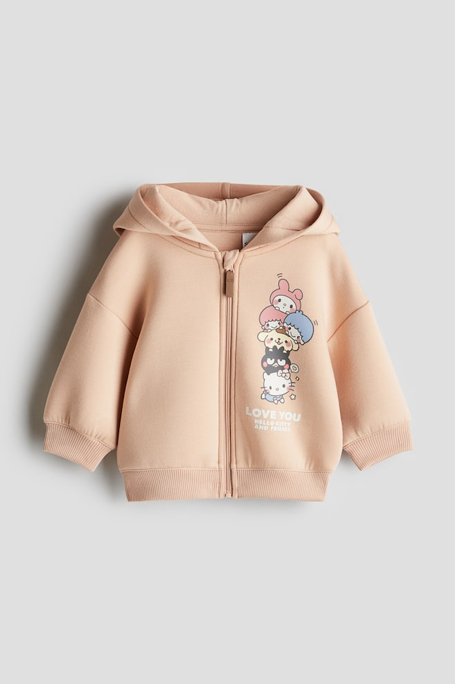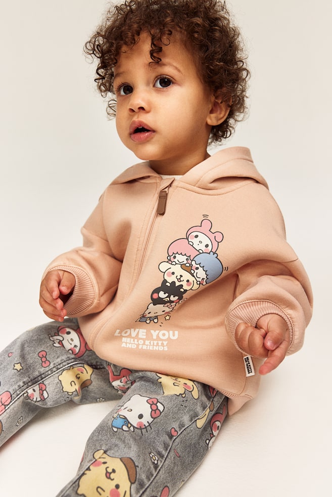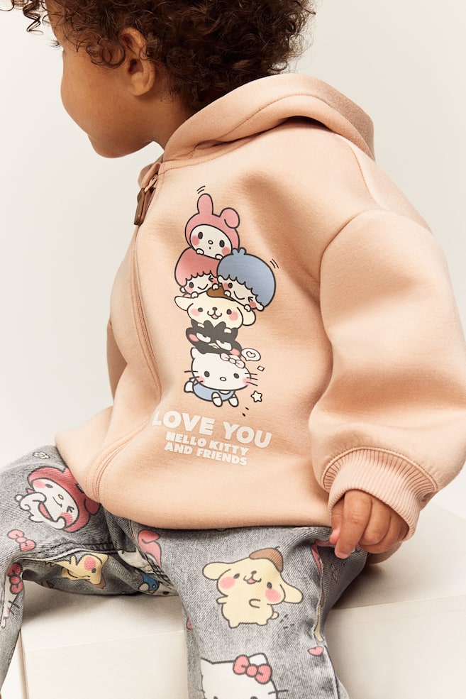 H&M x Hello Kitty и друзья. Веселая и красочная коллекция с уютными стилями, милыми принтами и игривыми аксессуарами. Откройте для себя мир Hello Kitty и всех наших пушистых любимцев! Куртка-толстовка с капюшоном и принтом спереди. Подкладка из джерси в капюшоне, спущенные плечи и защита подбородка на молнии. Манжеты и подол в рубчик.