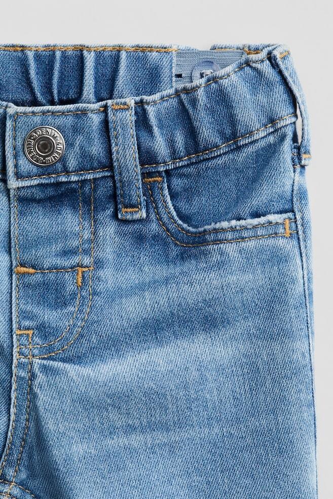Джинсы из стираного денима. Регулируемый эластичный пояс с ложной ширинкой и застежкой на кнопки. Декоративные карманы спереди и настоящие карманы сзади.