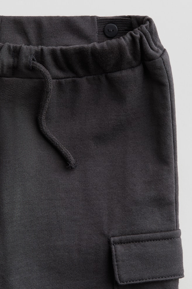 Спортивные брюки из хлопкового трикотажа с мягкой начесом внутри и карманами с клапанами на штанинах. С регулируемым эластичным поясом, декоративным шнурком и эластичными манжетами на штанинах.