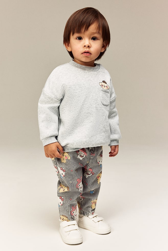 H&M x Hello Kitty и друзья. Веселая и красочная коллекция с уютными стилями, милыми принтами и игривыми аксессуарами. Откройте для себя мир Hello Kitty и всех наших пушистых любимцев! Рубашка из мягкой трикотажной ткани с мелкой шероховатой изнанкой и узорчатыми деталями. Круглый вырез горловины в рубчик с застежкой-кнопкой с одной стороны (кроме размера 98-104), спущенные плечи, манжеты и подол в рубчик.