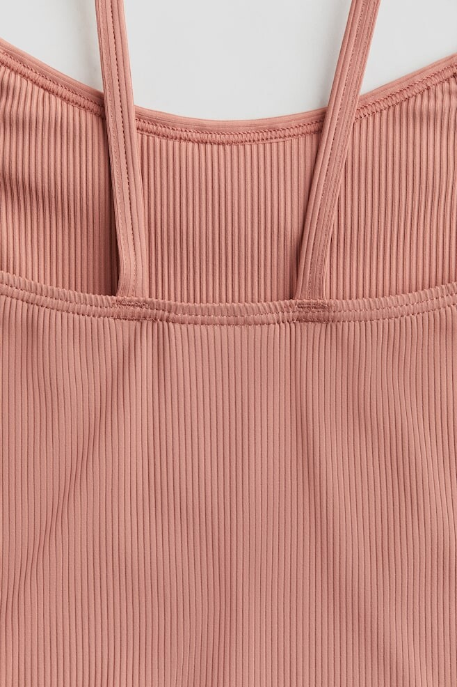 Ребристый купальник с тонкими бретелями и оборкой сверху. Подкладка с ластовицей.