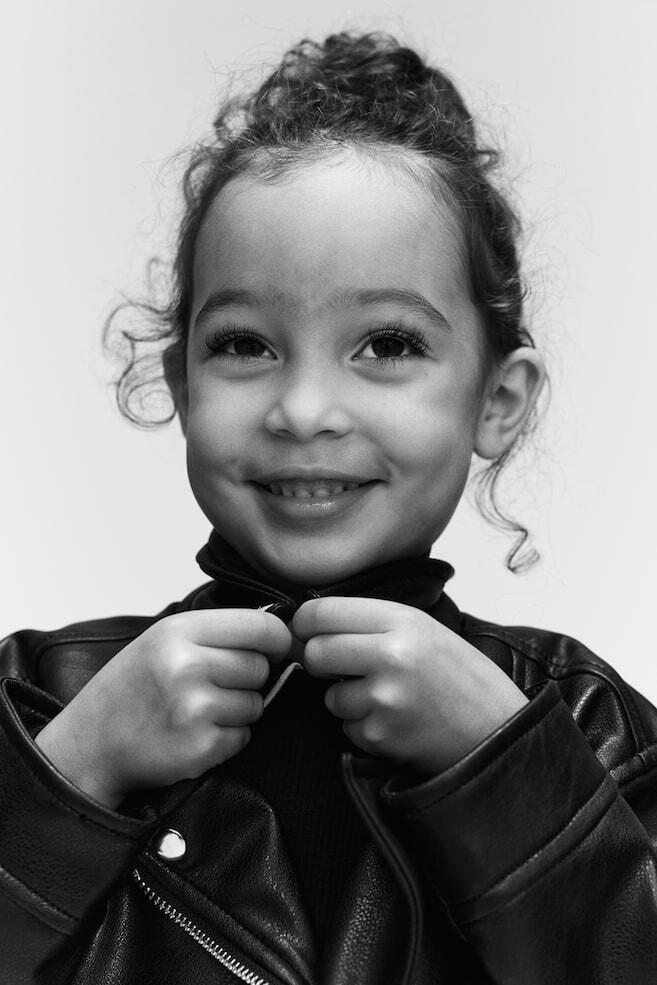 Байкерская куртка из ткани с покрытием, с декоративными кнопками на лацканах воротника, косой застежкой-молнией спереди и карманами на молнии. На подкладке.